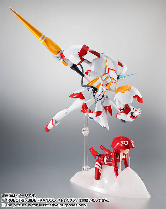 専用台座が付属し、別売りの「ROBOT魂 <SIDE FRANXX> ストレリチア」と並べてディスプレイする事も可能。