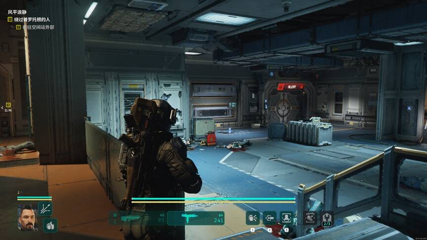 游戏的另一大特点便是游戏的场景构建,游戏作为一个以太空为背景的科幻作品,其中在外太空的战斗中各种地形破坏后这些建筑材料失重飞出去的场景让人印象深刻。同时游戏中的富有科技感的装备和在与建筑互动时的系统显示让我很吃惊,其中的科技细节非常帅气。