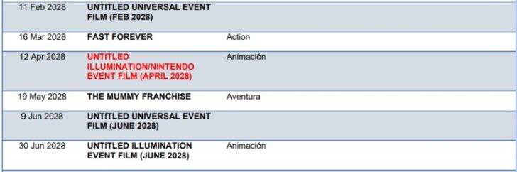 外媒VGC发现,在环球影业西班牙官网发布的更新日程表中,新增了“照明娱乐/任天堂联合制作的未命名活动电影(2028年4月)”,上映时间非常具体:2028年4月12日。