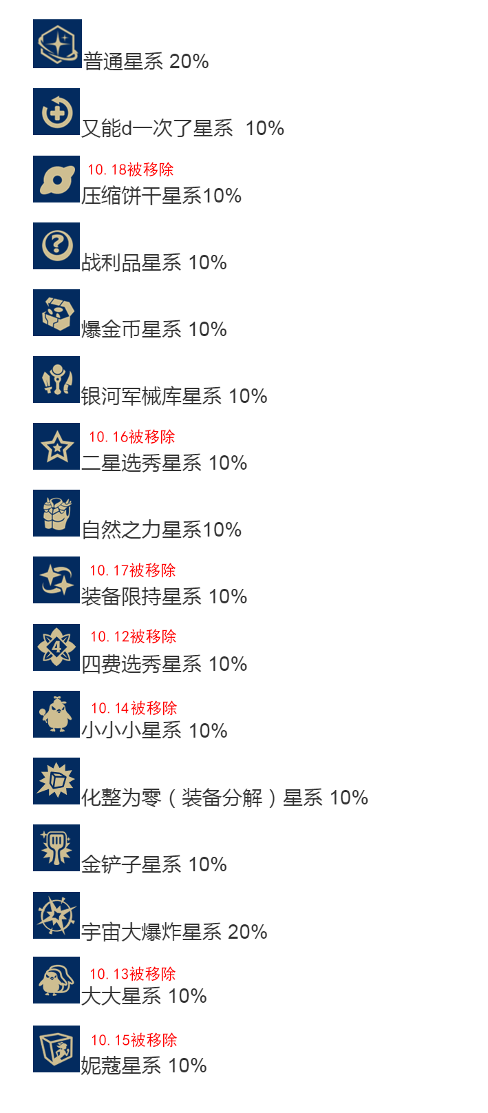 星系机制是s3独有的新机制,每局都会随机抽取一个星系,而每个星系都有自己独特的效果。