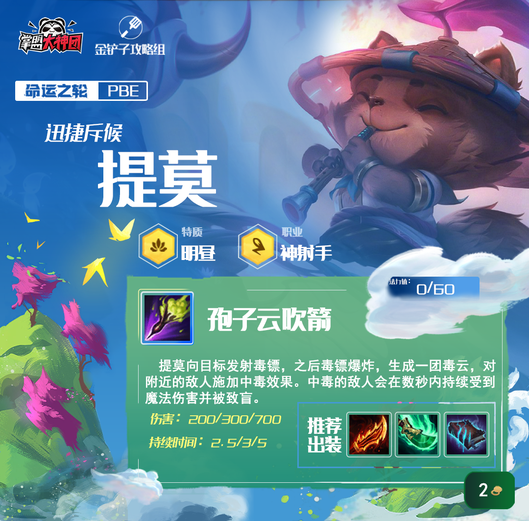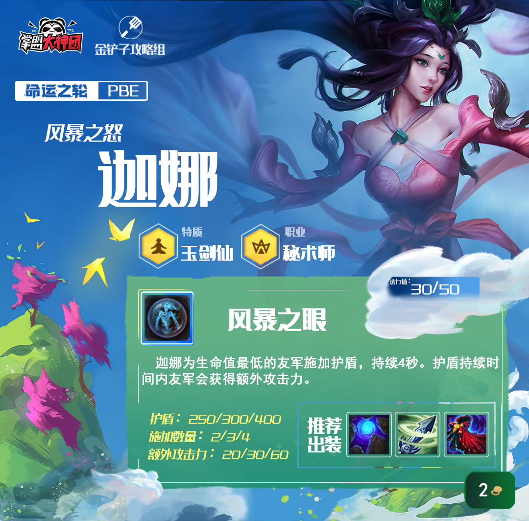 前期最强辅助子,蓝量短,技能收益极高。前中期二星风女对阵容的提升巨大。在某些特殊阵容里有风女主c的玩法。希望上线后不被削。