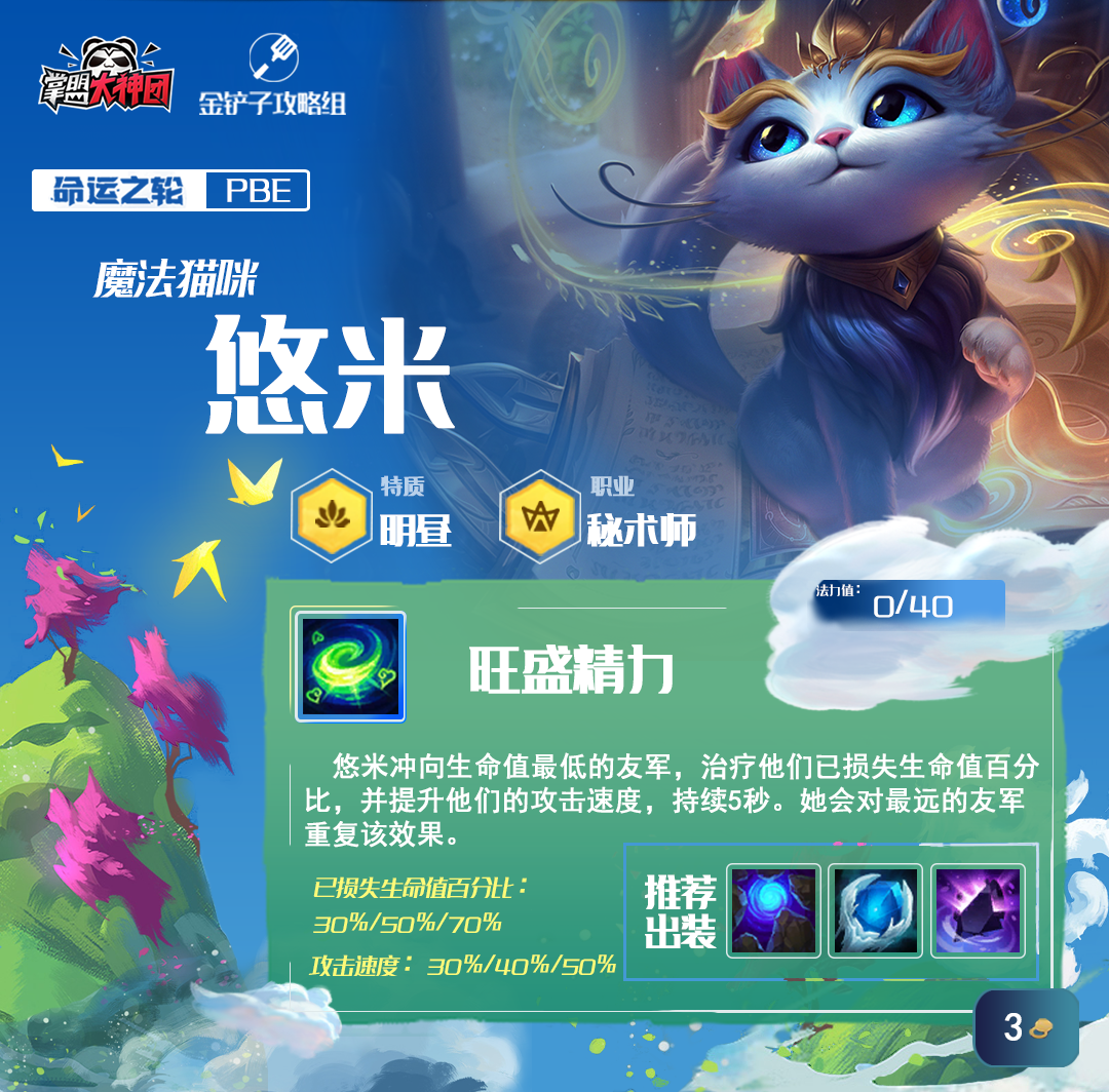 但美中不足的是,由于自身技能机制的问题,悠米有时候会对最大生命值较低的满血目标释放技能。不过,风女猫咪这套快乐组合,很有灵性。不知道是什么原因,现在看见猫咪就想笑。