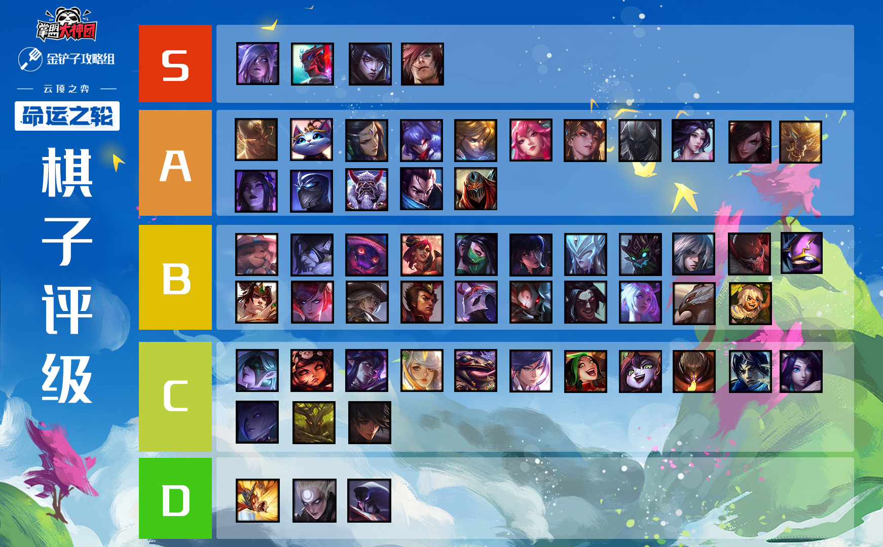 (以上为测试服大致分级,且由于天选之人的加入,增加了评定难度,实际排名请耐心等待国服正式上线。我们届时会评选出大致排名,或等官方发,咕咕)