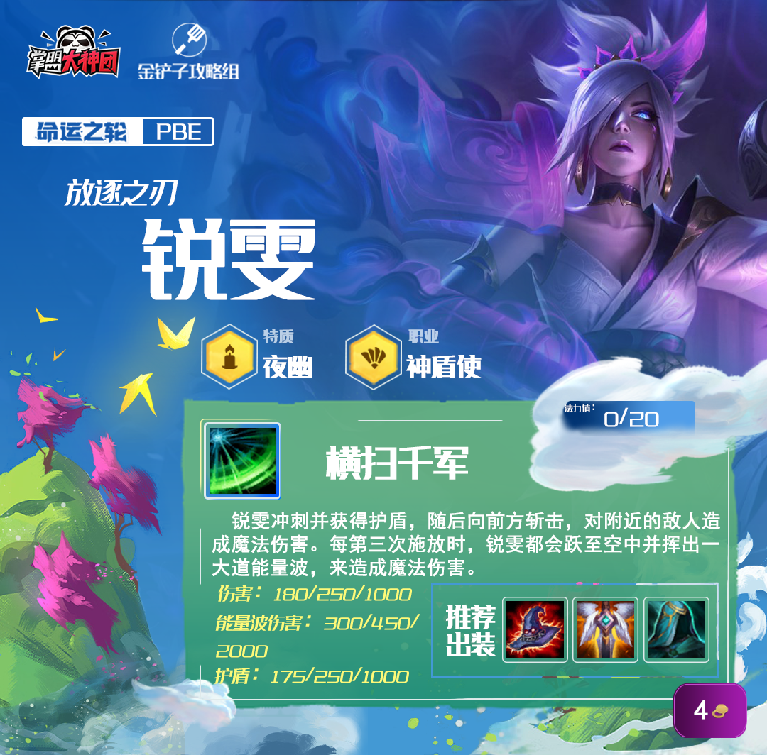 夜幽主c,设计师吸取了s3的经验,给了锐雯适合她的羁绊。因此s4的锐雯在输出能力上比s3更强,不过现在护盾无法叠加了,所以有**风险。