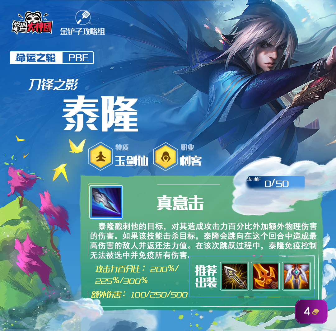 云顶刮痧大师,技能看着不错,但是每次只能拔出当前目标的矛,并且做斩杀计算时,不会计算护盾还有天神的伤害减免,还有各种“额外生命值”。