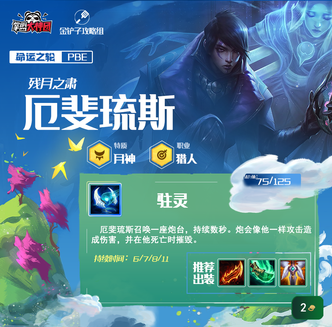 赌月神核心输出子。无装备时单卡强度较低,但有羊刀和复活甲以及月神/猎人羁绊后提升巨大。