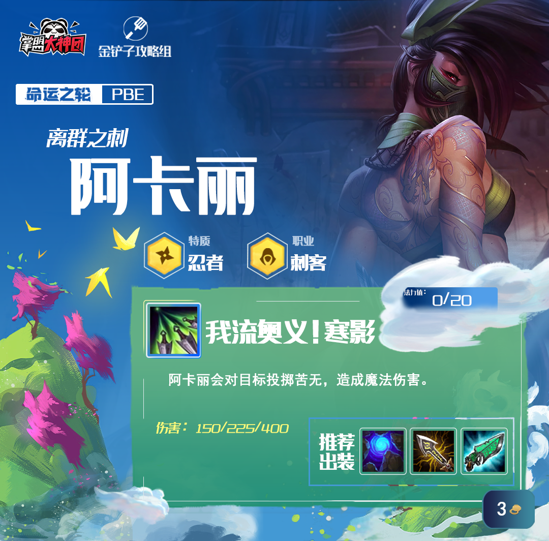 唯一一个有控的刺客棋子,技能很强,但蓝量过长,强度中规中矩。