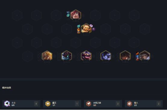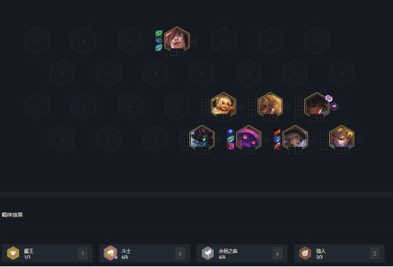 阵容构成:艾希、狼人、瑟提、努努、蔚、大树 塔姆 塞拉斯(8斗2猎 斗天选)