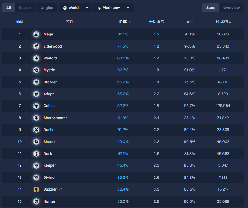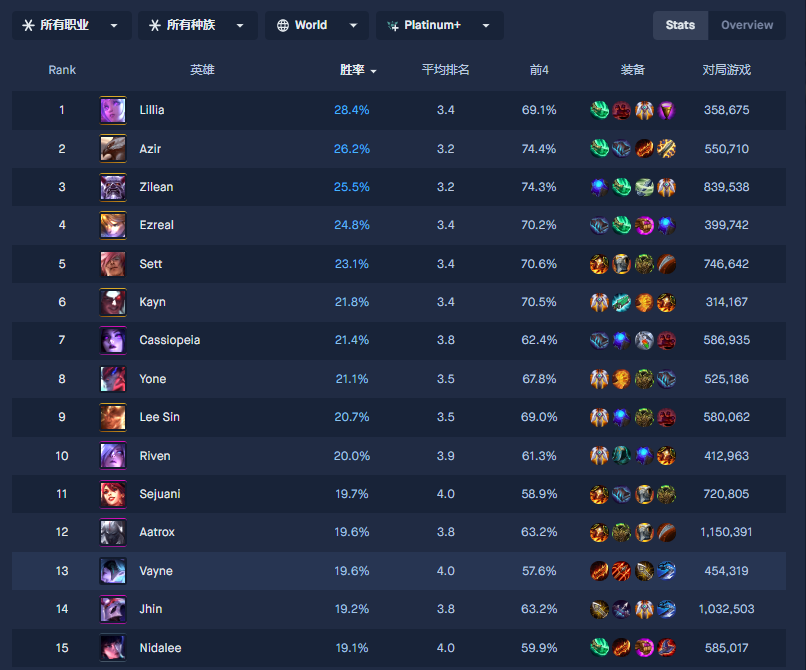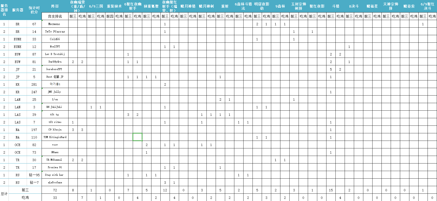 · 统计来源:国服来源wegame 外服lolchess.gg