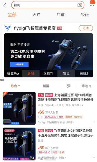 据悉,上海飞智电子科技有限公司为腾讯手游《和平精英》开发了一款“蜂刺”产品,该产品采用电容隔空映射技术和长按连点模式,是一款为手游《和平精英》打造的按键。