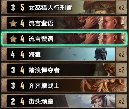 铜卡方面,我还是选择了毒体系来当基础。因为带上了dj,有二狗的情况下所以先手不会太弱,而毒体系的铜卡是很优秀的,同时黑货商人也是很优秀的铜卡 满仓可以落地10点的高节奏。而五p卡我选择了牧师而非食尸鬼,我感觉同为5p7点牧师更灵活,也可以攒钱,当然不喜欢的老哥可以换掉。