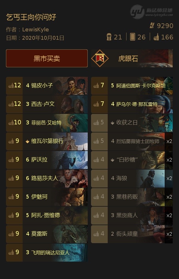 可以看到这两套卡组其实就是一点点细微的调整。(**的作用就是保证满仓下一个回合可以滤一张牌同时快速满仓,不喜欢就改收获之日,好用)我重新选择带上了老鸨17哥的经典组合,因为我们追求扎实的点数,而带上了很多献金的这套卡组老鸨也基本不会白,同时无老鸨的萨沃拉可以快速花钱,减小爆仓的概率(因为我们有很多的钱)这套我带上了二狗这张标配卡,当然也有老哥愿意多带上大狗,毕竟锤子没了(大快人心!)