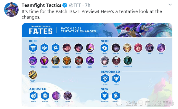 注:以下为云顶之弈官方推特分享的关于10.21版本的改动预览,不代表版本最终结果,国服一切以公告为准!