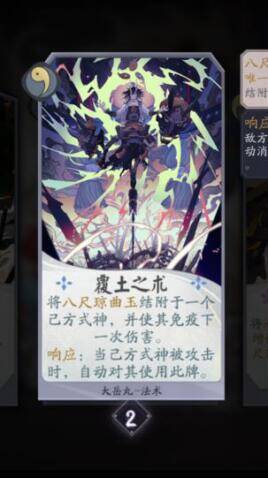 覆土之术:大岳丸的响应卡,既可以保护鬼切,还可以增加鬼切的斩杀能力,在某些特定情况下,还可以防御一些核心卡,例如破魔符、义道或一些高攻战斗式神的战斗牌或普攻,相当于一个泛用性的见切。