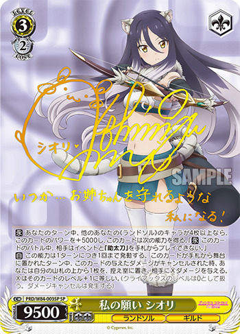 【永】你的回合中,其他的你的含有《ランドソル》特征的角色4张以上的话,此卡攻击力+5000,此卡得以下能力。「【永】此卡的战斗中,对手不能从手牌使用事件和「助太刀」。」