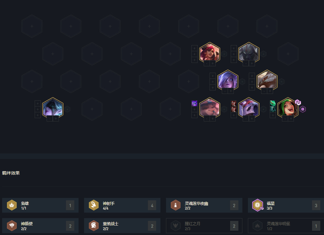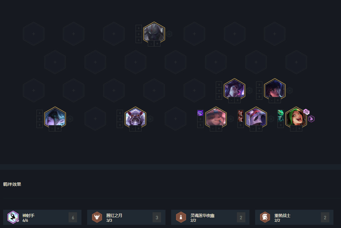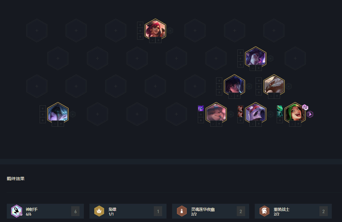 本周统计中未发现8斗,更多是6斗来提升肉度,增加猎人输出位3或4猎,利用猎人羁绊每过2.5-3秒便集火秒掉敌方一枚棋子。
