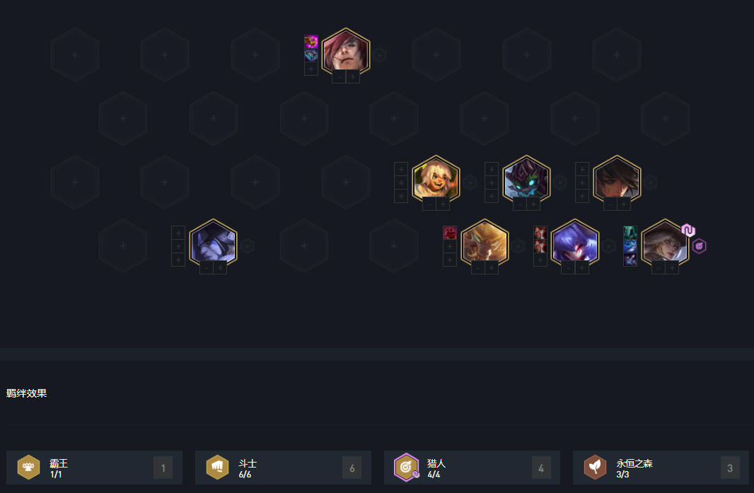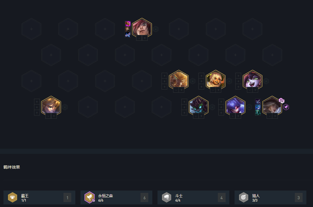 - 统计中森林斗猎阵容大部分为6森林4斗2猎,只有1局6森林6斗2猎。
