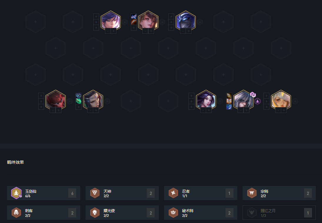 阵容总体为男刀服务,暴力装男刀,对于残局一个技能收割敌方全部,不虚当前版本任何阵容。