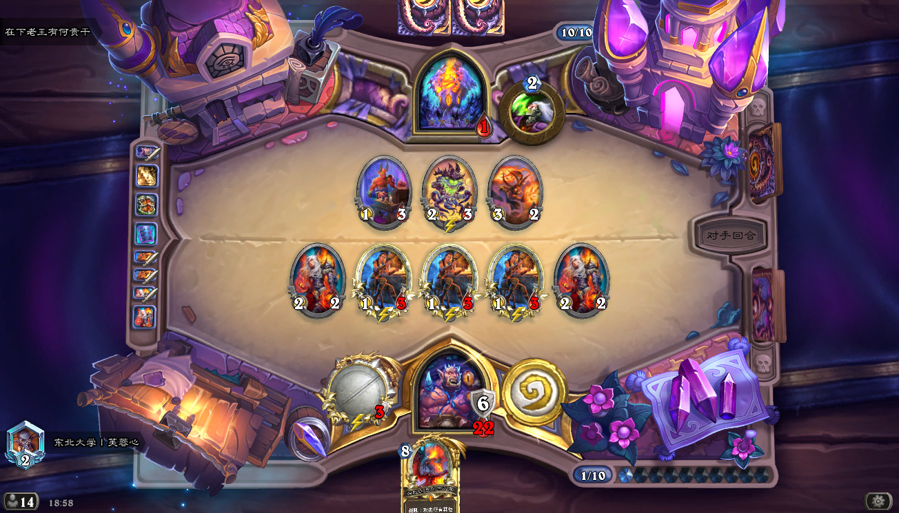 一个野兽德,直接otk;一个图腾萨,那个5-5图腾巨怪居然是图腾!大意了大意了;一个黑眼术,一波一波怪的节奏正好配得上一波一波的解牌,还有你们好会自残吖。