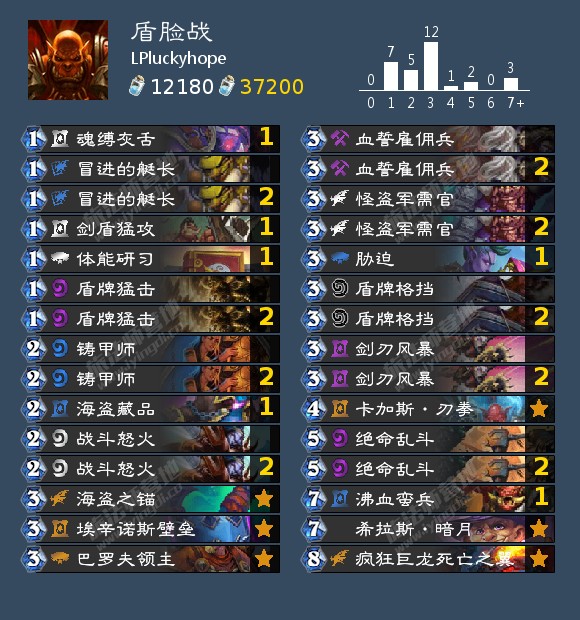 大家好我是小M,第一次发卡组推荐类文章。虽是术士信仰玩家,但这版本还是尝试了下隔壁叠甲哥,战士胜场也打到自己第二的一千二百场,平时主要在狗贼叔叔那里学学(白嫖)技术,所以这次为大家带来的卡组就是luckyhope的盾(猛打)脸战。
