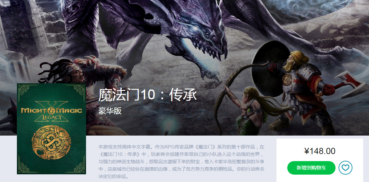 今日(11月3日)育碧商城更新了“双十一”活动详情,显示经典RPG游戏《魔法门》系列第十部作品《魔法门10:传承》(原价148元)将于11月5日-11月11日期间开启免费领取。
