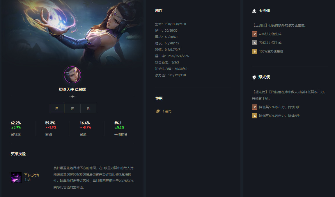 拥有S4棋子最高攻击力90,2星攻击力162。