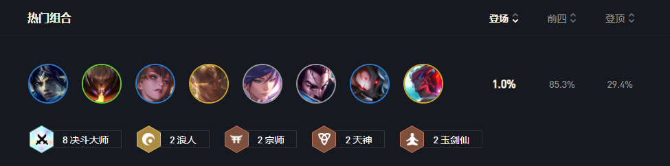 今天摩昂就给大家带来一套阵容,可能会有同行但一定没有玉剑耀光、夜幽、猎人同行多的阵容体系,真男人就是要决斗——决斗宗师。