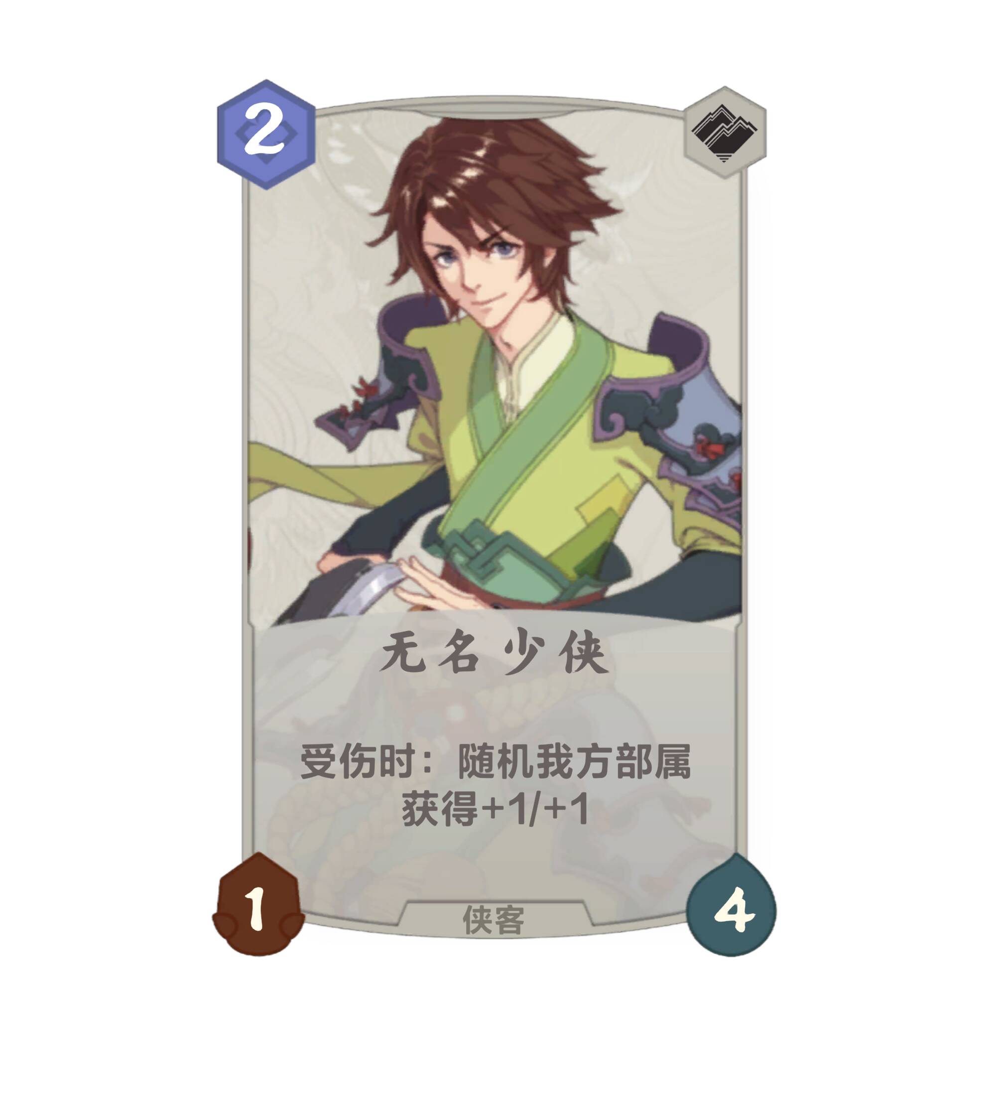 无名少侠的异能会在自身受伤时为随机我方部属获得+1/+1的增益buff。