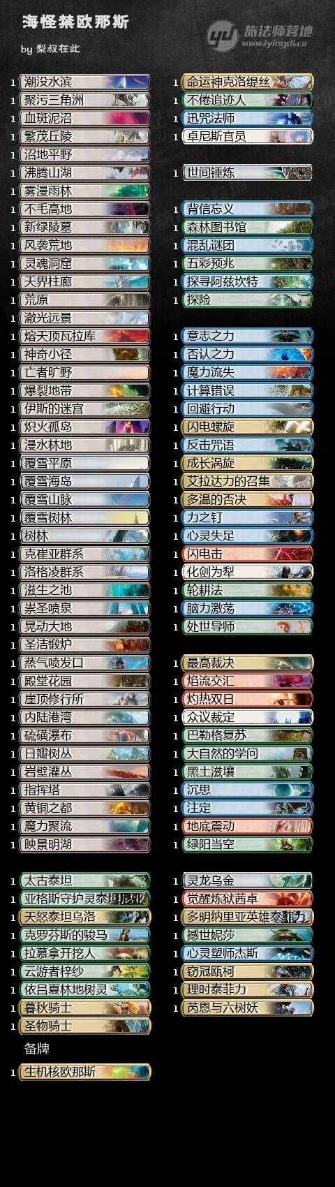 找地用了12张,最大限度确保双地落的可能,也是三地落打输出的重要基础。调色方面采用了电震圈,群系,慢地和常见的五色地:如指挥官塔、黄铜之都、映景明湖、魔力聚流等。啥?慢地居然上了台面?老圈在哪里?大哥我老穷鬼一个求放过?