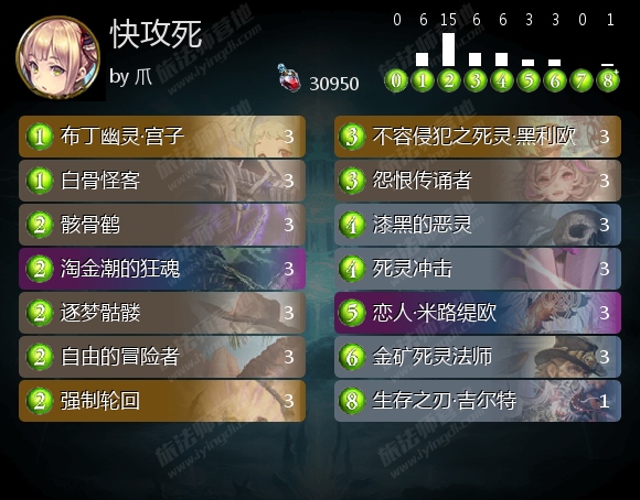 这套快攻死脱胎于福冈SoftbankHawks使用的构筑,去掉了两张勒比卢的无法者,改为了一张金矿死灵法师和一张生存之刃·吉尔特。勒比卢的无法者依赖载具来站场,而爪的思路则是追求极限的抢血,更希望把所有的载具加到疾走随从身上。而增加的两张卡中,金矿死灵法师无论是召还出怨恨传颂者还是不容侵犯之死灵·黑利欧都能比较稳定地打出2点直伤,吉尔德则可以在对局陷入僵局的情况下放弃场面去寻求直伤和斩杀。虽然本构筑中并未携带,不过爪认为亡者派对也是一张非常适合快攻死的牌。