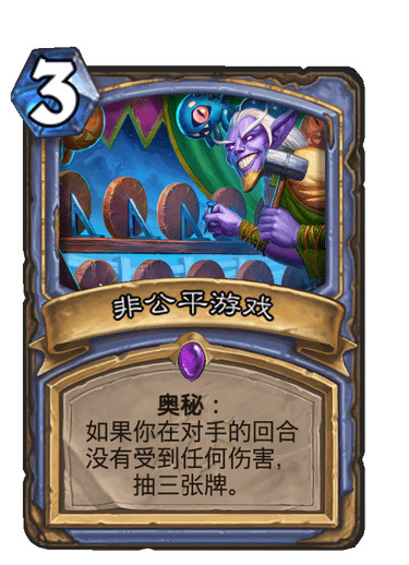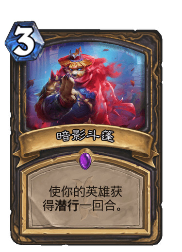 这是一张很有风味的卡,看似被寒冰屏障和暂避锋芒完爆,实则却弥补了盗贼最缺乏的苟活能力。它可以与闪避dk结合用,为盗贼硬拖回合数。适合一些偏杂技的慢速盗贼,比如昔日臭名昭著的爆牌贼。
