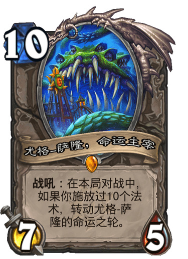 新版本四大古神中最看好的一张,对比旧版尤格萨隆,它的随机性更强,平均期望也更高,很可能取代旧版尤格萨隆。但是如今的主流卡组大多不带导演,如果是偏娱乐的套牌不妨两个都带着,享受双倍快乐。