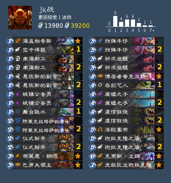 这版本设计师又给了战士新玩具,海盗机械龙,看上去是为jk战量身打造的,实际没有想象的那么美好。首先很多jk战已经放弃了发条地精,因为除了打宇宙卡组,三费一个33白板显然是无法接受的。其次这个体系的卡,大多都比较亏节奏,很难加入jk战本就紧张的卡位。
