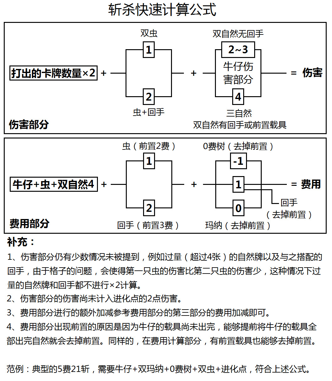 实际上就是万变不离“使用牌数×2+1(双虫)或2(虫+回手)+额外伤害或对手血量与20的差值”。虽然实战可能有点差别但是这个公式永远是最常用的那个。