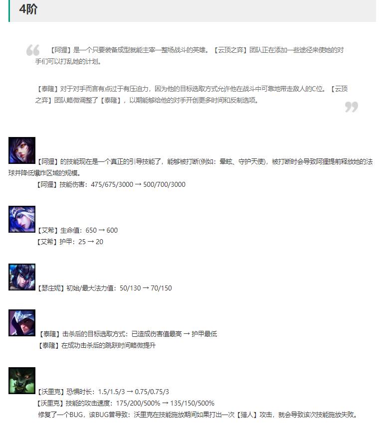 狼人解读:1-2星恐惧时间降低,2星攻速降低,这是与上面天神相互呼应的改动。避免攻速狼再次称霸。