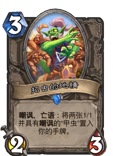 在这之上我选择了腐化水源这一体系构筑,因为双倍战吼能进一步提升沙漠野兔等牌的上限,而且能一定程度上协助过牌和补牌,增加卡组的稳定性。