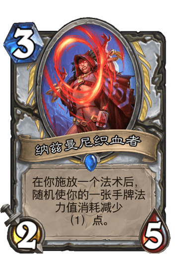 新版本卡牌高跷艺人与空翻杂技涉及了一个全新的机制,即抽到并立即使用。对高跷艺人而言,抽一张并立即打出的概率通常不会太低,特别是在构筑曲线较低的快攻形态中。不过空翻杂技的抽二打二的实现难度则明显高出不少。一般而言,快攻形态的平均法力消耗大约在2费左右,也就是平均7费回合以后才可以比较容易地触发它的特效,算是一个比较适合这张牌的应用场景。