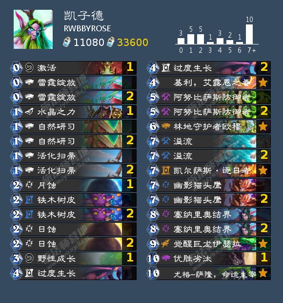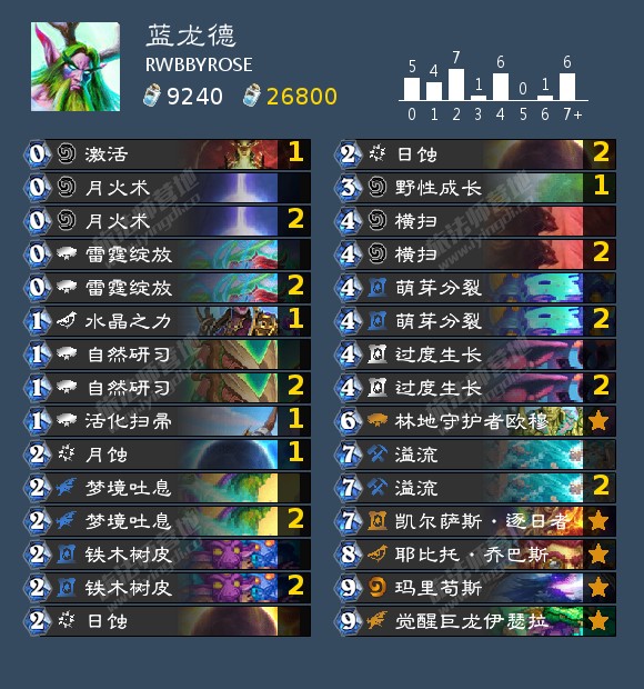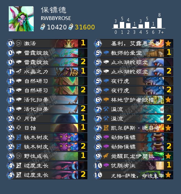 蓝龙德是另一套值得探讨的的德鲁伊体系,因为在打人目标不改变的情况下,日蚀+横扫实在是太香了,毕竟在蓝龙德对局中,卖横扫或月火的情况太常见了,日蚀的出现,可以弥补之前卖掉的法术伤害,蓝龙德终于实现了它在凤凰年的完全体。