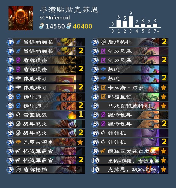 这套面对快攻顶住压力防守反击,毕竟卡组框架还是之前的防战框架,拥有还不错的抗快能力;面对慢速则考虑靠新的克苏恩取胜;在任何劣势下,导演都是博取翻盘的机会。