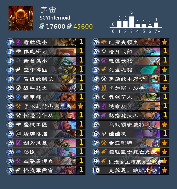之前也有JK体系的嘲讽战,但是因为比较依赖JK的不稳定buff,而且最好是求满的JK,过牌也略欠缺(甚至觉得没卡位带娃娃机),一套JK体系加入后卡位实在是紧凑,于是放弃了对于JK嘲讽体系的想法。其实也可以考虑和恩佐斯贴贴,但实在是不太合适。