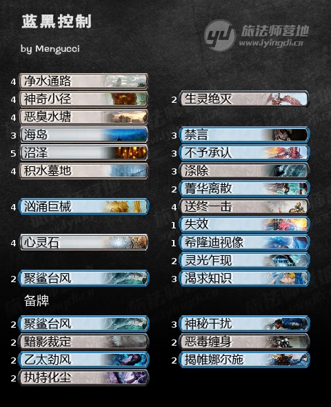 昨天推了一套蓝白控制,今天再给大家推荐一套蓝黑控制。套牌带了各种康和杀,以汹涌巨械和聚鲨台风作为终结手段。如果能结算蓝巨械返照灵光乍现,康了对手,自己抓牌,场上还能站两个56大个,甚至你还能把蓝巨械拿回去白嫖!