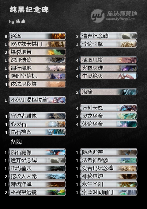 套牌混黑加入了去除清场以及思绪,改良了和快攻以及控制的对局,不过同时也削弱了跳费能力。另外还有火雹灾难作为终结手段。感谢“酱油”同学的分享~