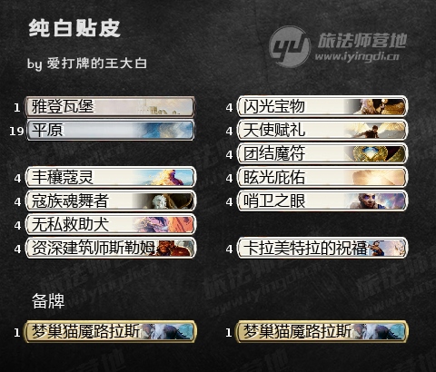这是一套BO1套牌,套牌我看很多人叫黑白(Orzhov)灵气,但我看来看去也是纯白啊,一块沼泽也没有,硬要说沾黑那就是行侣路拉斯了。