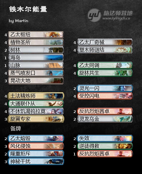 乙太厂的目标主要还是乌金和钨拉莫。红色带来的旋翼专家,可以使套牌可以更好的应对快攻。而茜卓也增强了和慢速的对抗能力。值得一提的是,由于第一天很多人都在用无色神器套搞事情,备牌加入了隆重拒斥(U:反击目标无色咒语),十分高效。