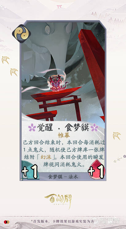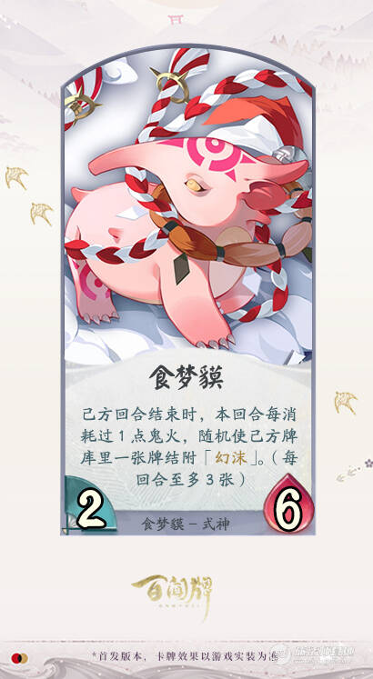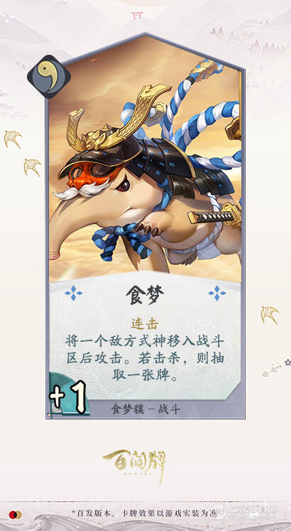 可以指定目标,增加食梦貘的战斗能力,同时增加卡组“过牌”能力。如果能抽到结附卡,还可以增加本回合己方某个式神的能力。
