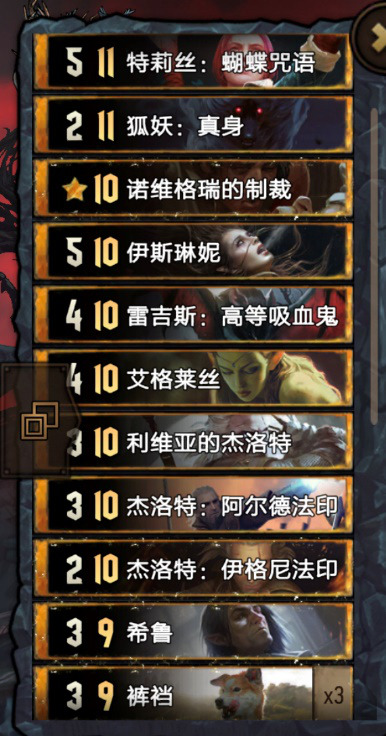 依然是一个选金卡的游戏,3个杰洛特这种30p+的组合,跟炼金、活力词条有些18p不到的组合,差距仍然很大。