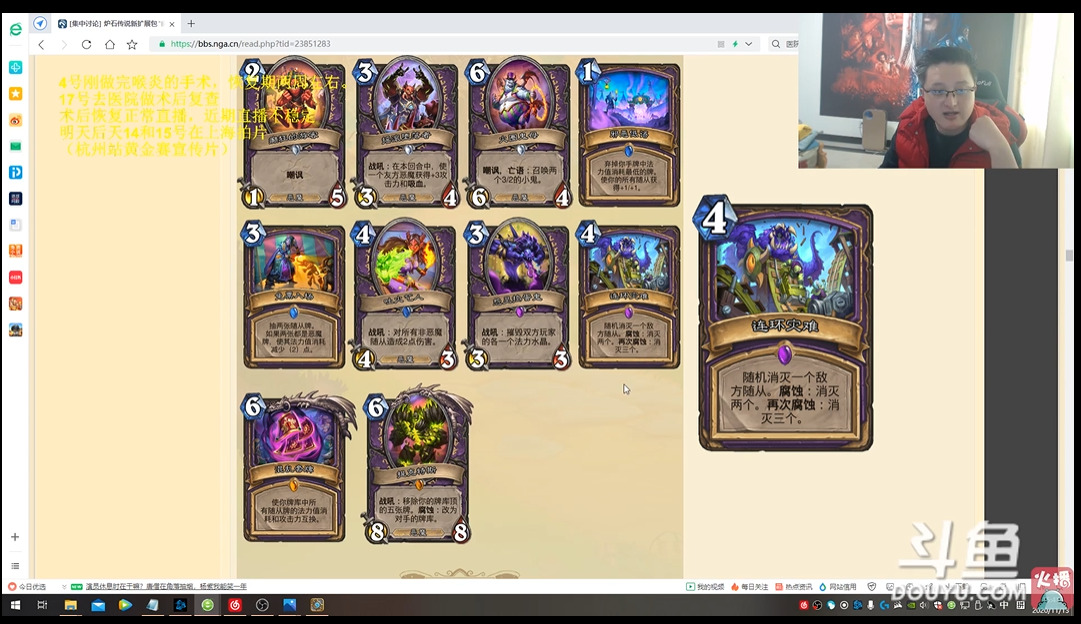 2、本文参考的术士职业新卡点评思路包括:xhope特兰克斯(以下简称二人组)、奶粉、异灵术、我自己和身边一些好友的看法。二人组作为职业选手代表对标准赛场表现更了解,奶粉和异灵术作为狂野老牌控制类术士玩家,观点有较高的参考价值。我自己的术士胜场多数来自于狂野,标准主要是祈求术,狂野宇宙术和快乐术为主,少数其他术士,经常在几百名不算低的分段划水,思路可以参考一下。