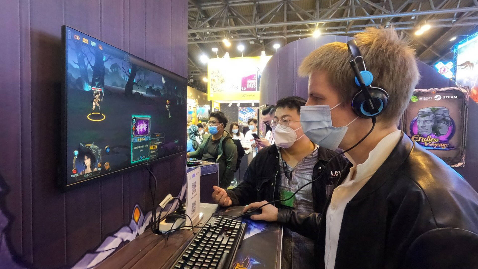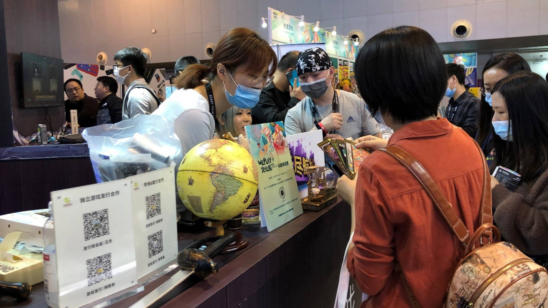 2020WePlay文化展的第二天,苦柚Games展台依旧聚集了很多玩家。部分玩家热情高涨,连续两天都前来试玩游戏。