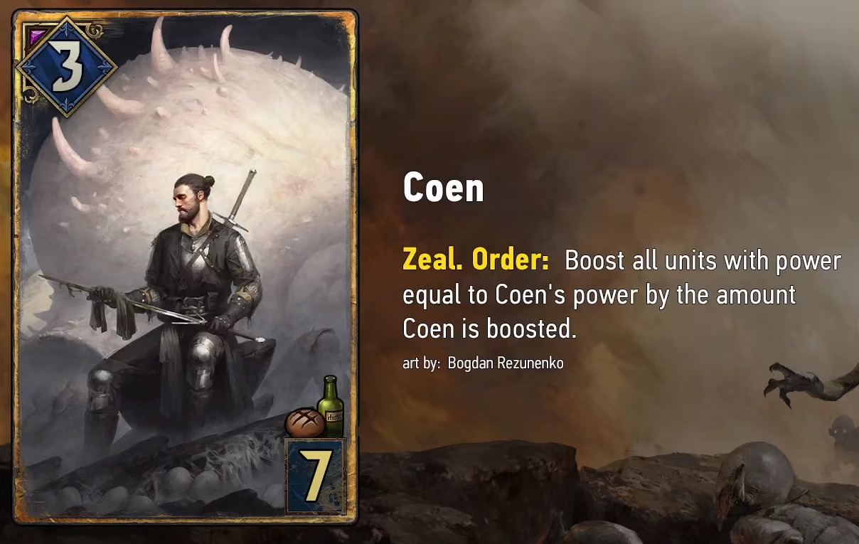 狂热:指令:增益与自身战力相同的所有单位,数值等同于“科恩”所受到的增益量。