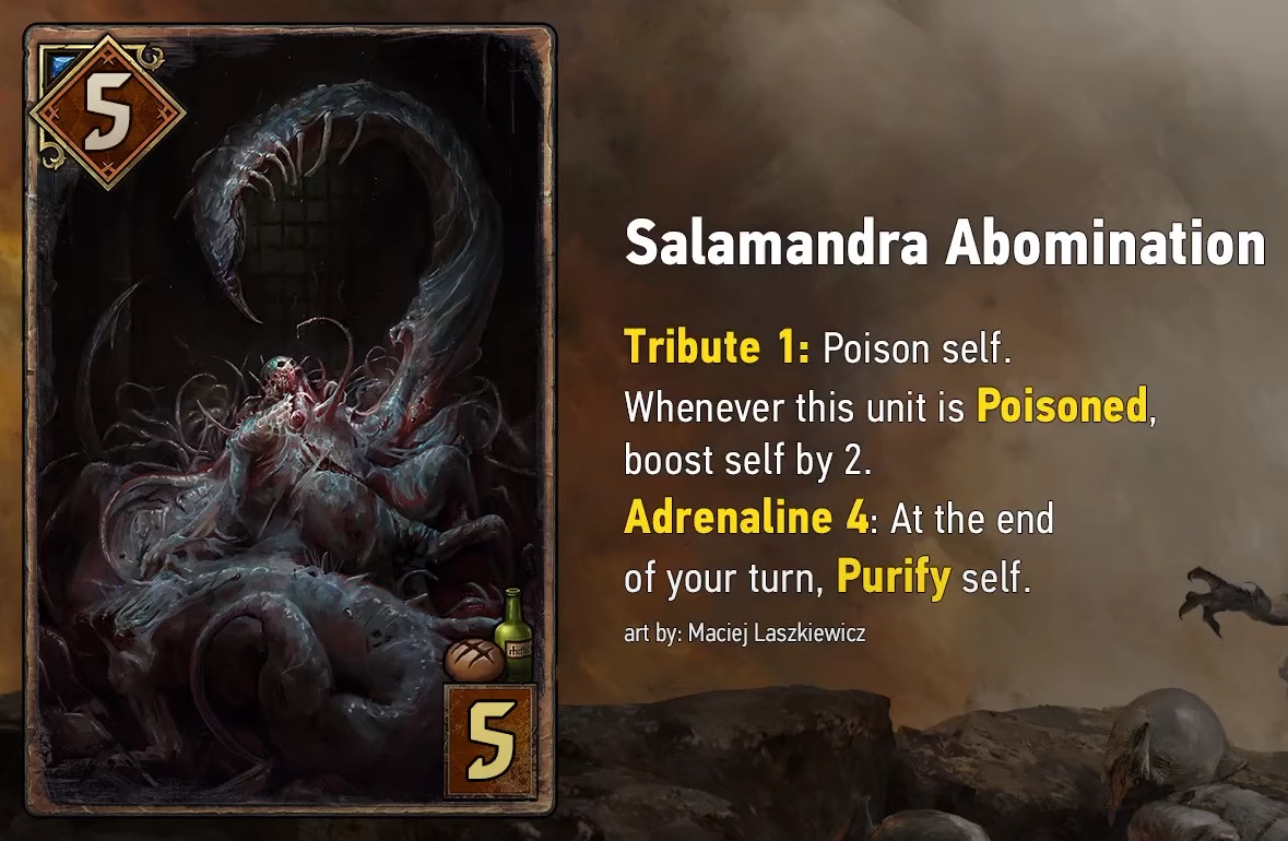 献金1:使自身中毒。每当该单位中毒,增益自身2点。